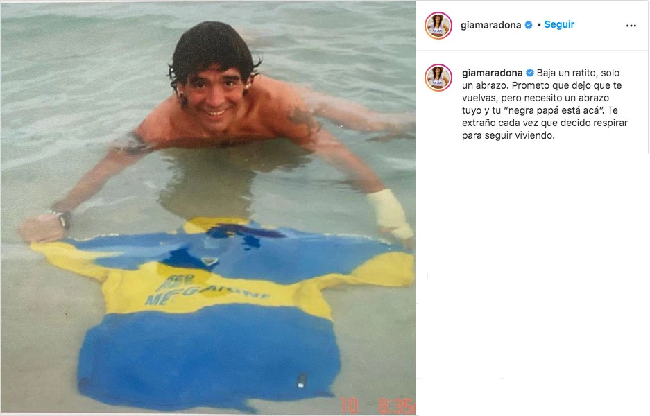 Gianinna Maradona (31) se muestra muy activa desde las redes y a un mes y medio de la muerte de Diego Maradona, la hija menor del astro con Claudia Villafañe (59) volvió a mostrar material inédito de su padre y le dirigió un conmovedor posteo.