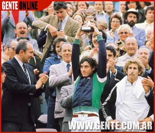 Roland Garros, Francia, 1977. Willy Vilas levanta la copa del triunfador. En la Argentina se festejó como un Mundial de fútbol.