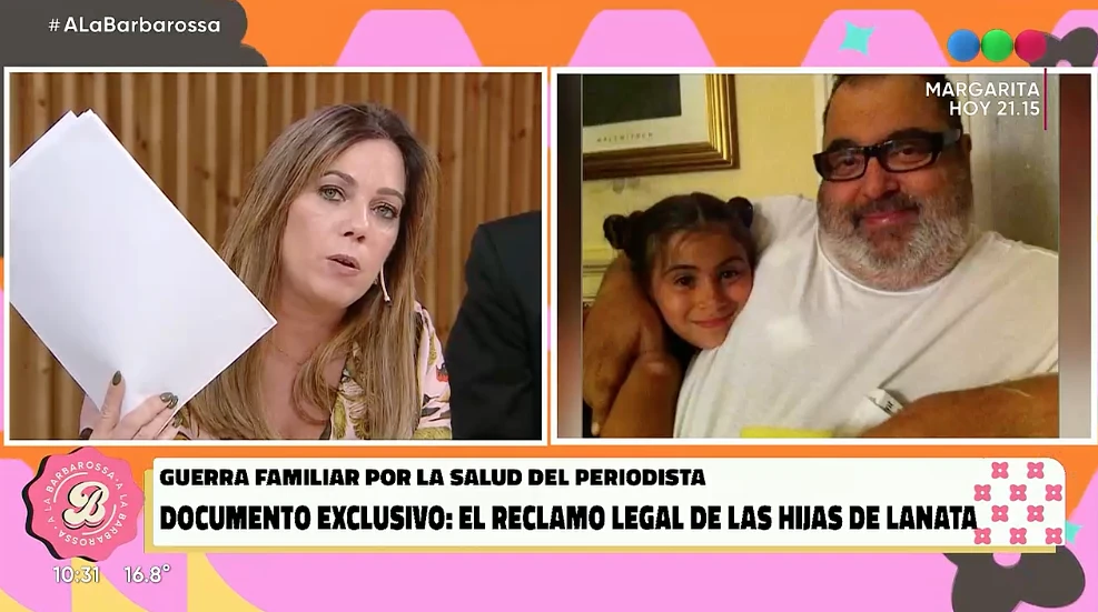 "¿Qué pasó? Las hijas de Jorge Lanata se presentaron en el Juzgado N°8 y piden la designación de una red de apoyo, porque lo que dicen las hijas y gente que rodea a Jorge Lanata: Elba perjudica la salud de Lanata. Habla de suspensión de poderes, cambios de cerraduras, y un listado de objetos faltantes", reveló Pía.