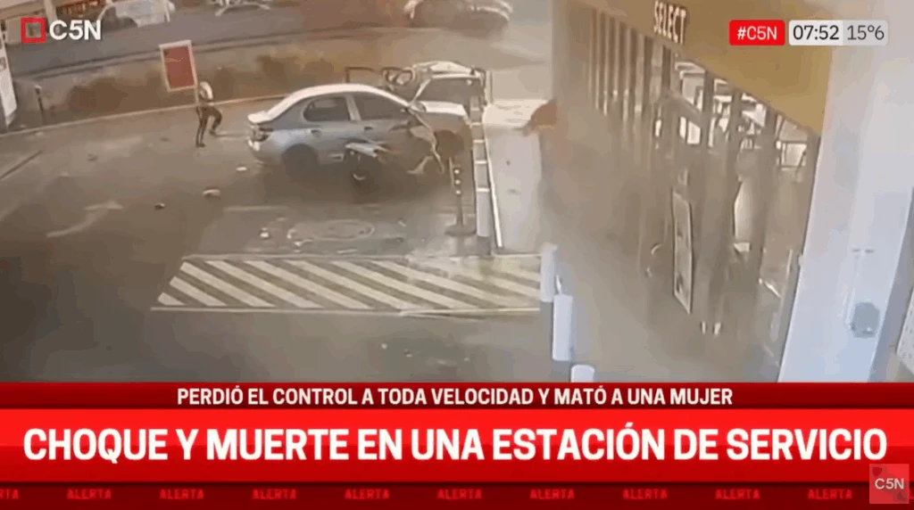 El video, difundido en las últimas horas por el canal C5N y viralizado rápidamente en redes sociales, muestra cómo un Renault Megane, conducido por un hombre de 60 años, pierde el control y atraviesa a toda velocidad el playón de carga de combustibles.