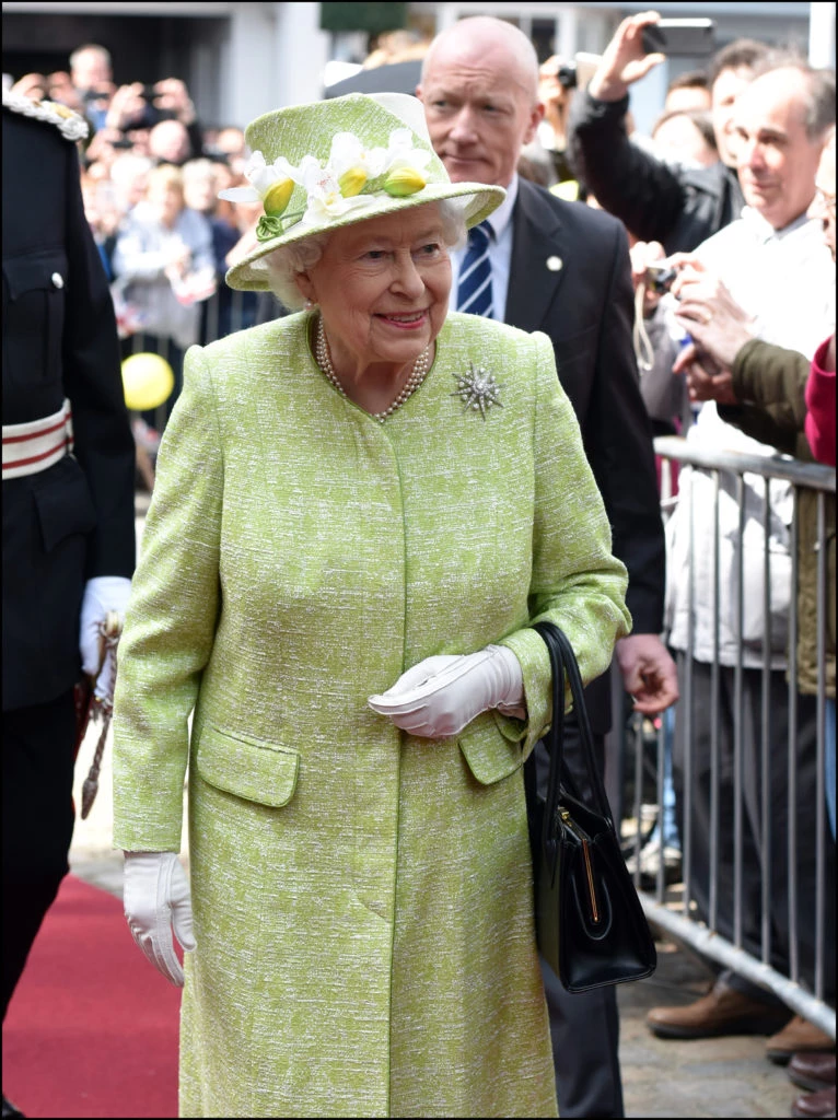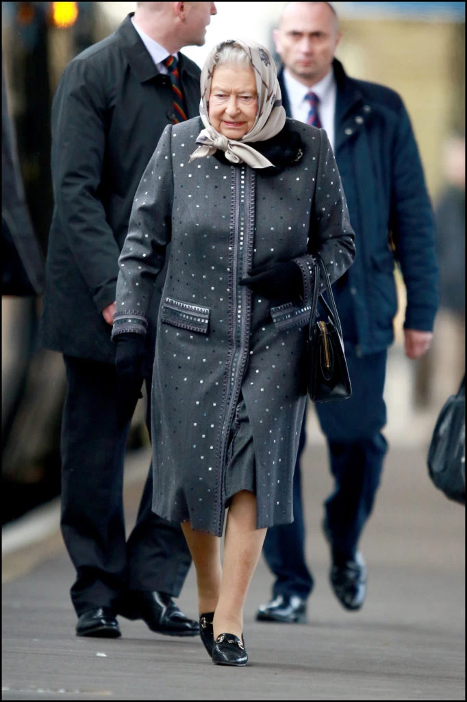 A lo largo de su reinado, Isabel II ha creado dos uniformes: el de trabajo y el de ocio. Para el primero, abrigo-vestido de color con largo por debajo de la rodilla, complementados con un sombrero a juego -con el ala no demasiado ancha para no perder la visibilidad-, collar de perlas, broche, mocasines Anello & Davide, guantes y bolso de mano cuadrado de Launer London, que llevaba en el antebrazo.