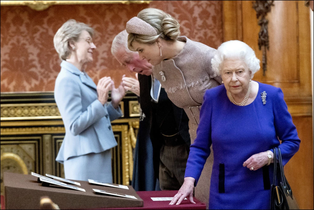 La reine Elisabeth II d'Angleterre, la reine Maxima des Pays-Bas et le prince Charles - Le couple royal des Pays-Bas en visite au palais de Buckingham ‡ Londres, ‡ l'occasion de leur voyage officiel au Royaume-Uni. Le 23 octobre 2018 23rd October 2018 London UK Britain's Queen Elizabeth II, Britain's Camilla, Duchess of Cornwall and Britain's Prince Charles, Prince of Wales accompany King Willem-Alexander of the Netherlands and Queen Maxima of the Netherlands in a viewing Dutch items from the Royal Collection at Buckingham Palace in London on October 23, 2018, at the start of the Dutch King and Queen's two-day state visit.
