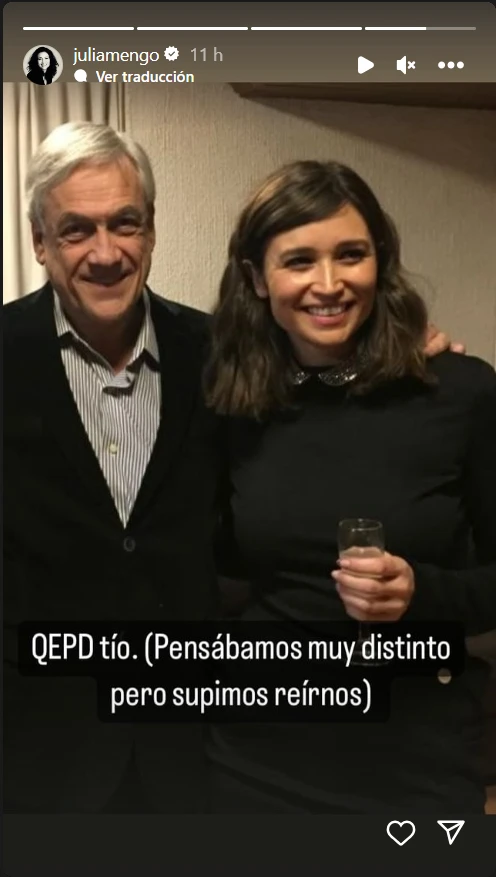 En ese sentido, explicó que sí. ¿Cuál? El tío de Julia está casado con la hermana de la mujer del expresidente Piñera. Incluso Julia remarcó que lo conoció de cerca: “Estuve en su casa, lo vi en casamientos y cumpleaños. Charlamos de política”.