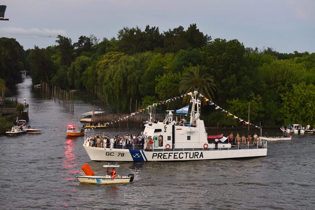 Luego, la celebración continuó con la tradicional procesión náutica por el río Luján, encabezada por la embarcación que trasladó a la virgen y que tuvo como punto de partida y llegada el muelle de la Prefectura Naval Zona Delta, en un recorrido que pasó por el Puerto de Frutos y el Museo de Arte Tigre (MAT). Una gran cantidad de botes y lanchas se sumaron a la emotiva caravana detrás la embarcación principal, mientras desde la costa de Paseo Victorica, los fieles saludaron su paso, agitando pañuelos blancos y amarillos, expresando sus deseos y agradecimientos.