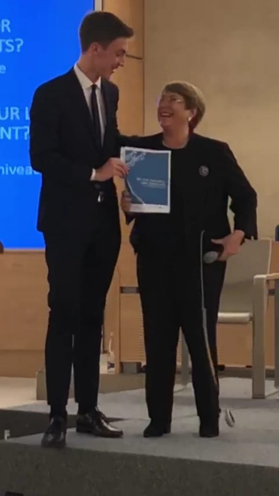 Kurt saludó a Michelle Bachelet en Ginebra.