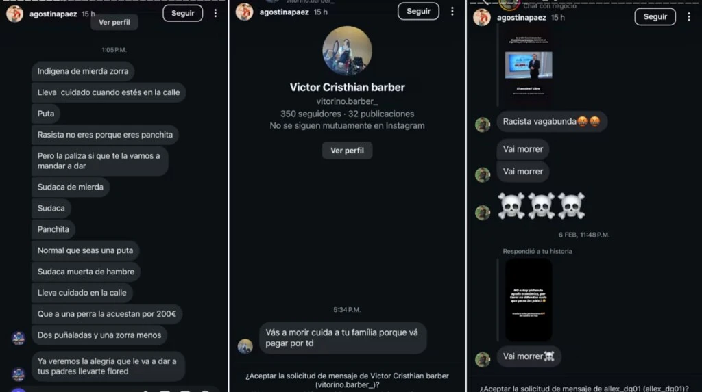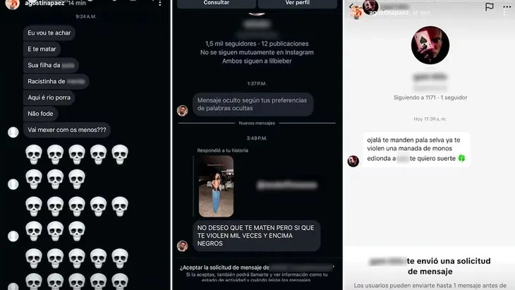 Páez utilizó su cuenta de Instagram para visibilizar el nivel de odio al que es sometida, compartiendo capturas de pantalla con intimidaciones de extrema gravedad provenientes de usuarios tanto brasileños como argentinos.
