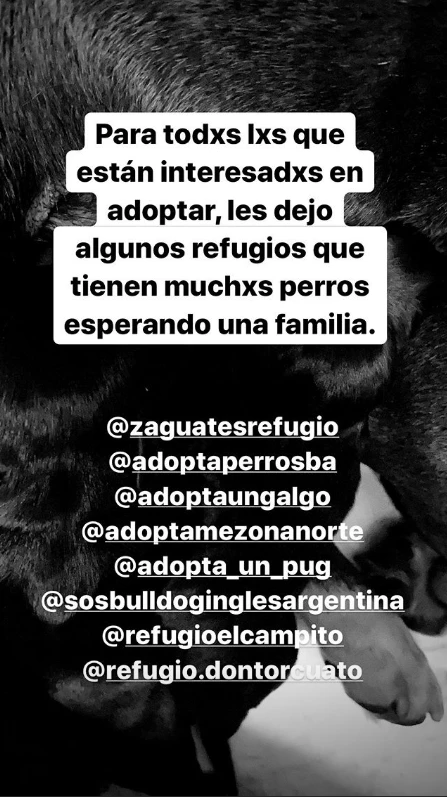 Al parecer fueron tantas las consultas para adoptar a los nuevos integrantes de la familia, que la mamá de Rufina y Magnolia publicó un mensaje al respecto: "Para todos los que están interesados en adoptar, les dejo algunos refugios que tienen muchos perros esperando una familia", junto a un listado de refugios.