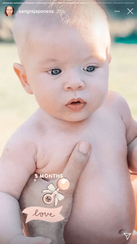 "¡Cinco meses, amor!", expresó ella, súper orgullosa desde sus historias de Instagram junto a la foto de Amancio al aire libre. ¡Y el bebé es igualito a ella!