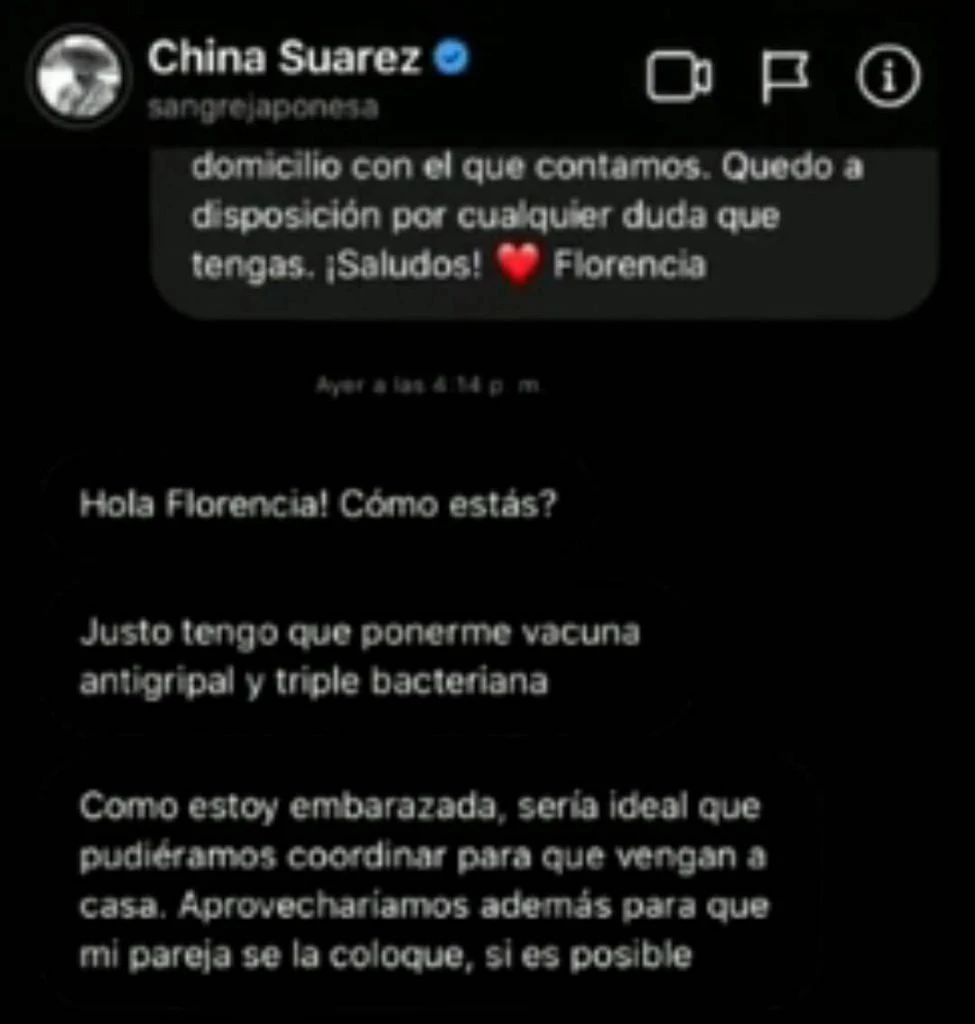 Junto al texto, la actriz habría enviado la orden médica para la vacuna, su DNI y los datos que le piden desde el vacunatorio.