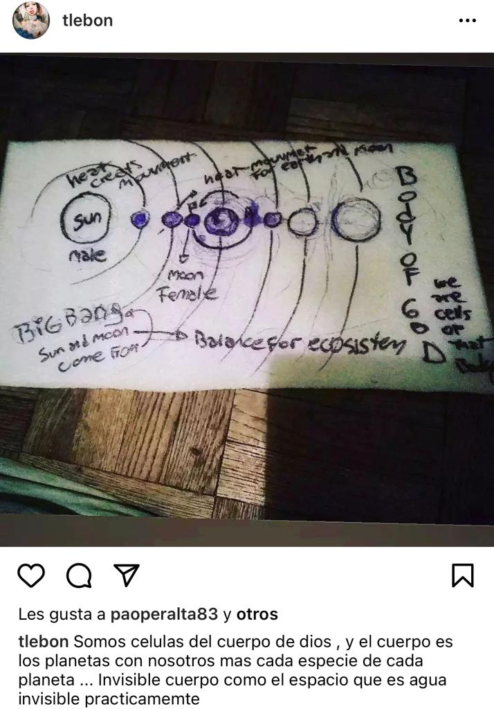 El 4 de octubre pasado, Tayda compartió una serie de posteos enigmáticos en los que filosofaba sobre el universo y el futuro y aseguraba: "Somos células del cuerpo de Dios".