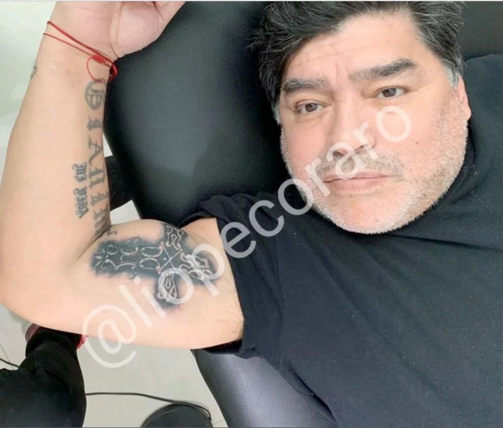 Por su parte el Diez también tomó la decisión de borrar a su ex pareja de su cuerpo y en su lugar puso el dibujo de una cruz.
