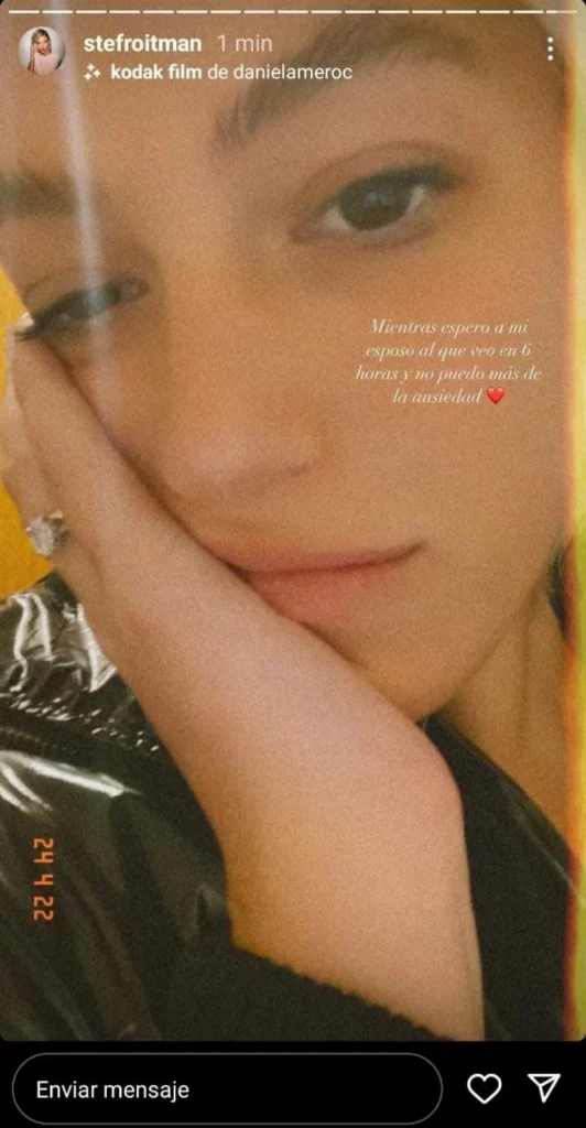 Como es de costumbre, la modelo le fue comunicando a sus casi 4 millones de seguidores cada momento de su viaje. "Mientras espero a mi esposo, al que veo en seis horas y no puedo más de la ansiedad", publicó en sus historias, acompañado de una foto de ella.
