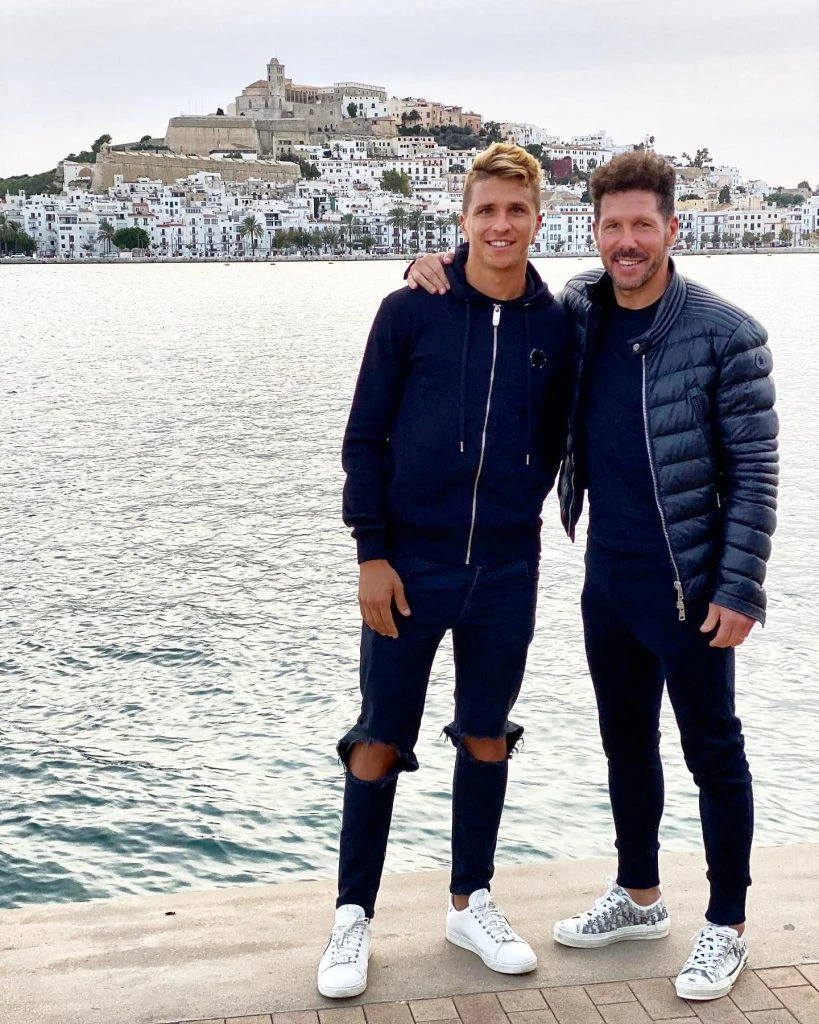 El entrenador del Club Atlético de Madrid viajó a la isla junto a su mujer, Carla Pereyra, y sus hijas menores, para visitar a Gianluca, fruto de su relación con Carolina Baldini.