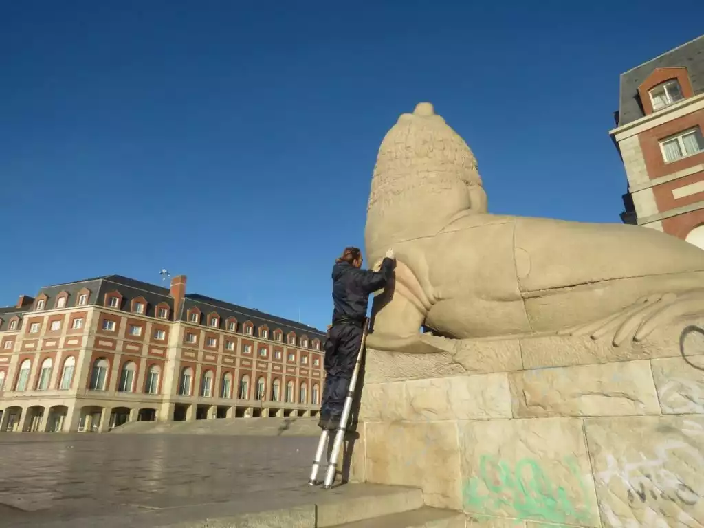 ¿Cuál es ese trabajo? Ella lleva adelante la recuperación y puesta en valor de los monumentos desde la municipalidad. “Lo que hacemos es cuidarlos, intervenirlos y difundirlos como fragmentos de la historia de la Ciudad, de la identidad cultural marplatense.”
