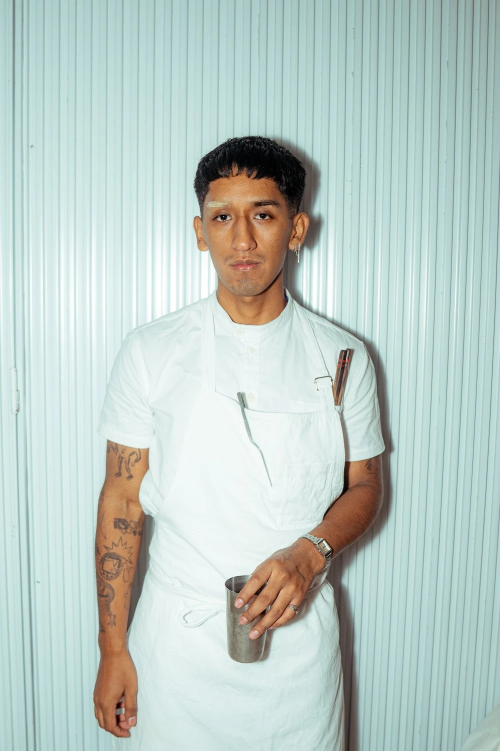 “Hoy es día de producción. Arrancamos temprano… hacemos una producción previa de las cocciones que llevan tiempo, los encurtidos, fermentos o aderezos. Todo tiene un proceso”, cuenta apasionado, dando unas primeras señales claras de cómo es su personalidad, la e alguien seguro que se vuelca de lleno en lo que le gusta.