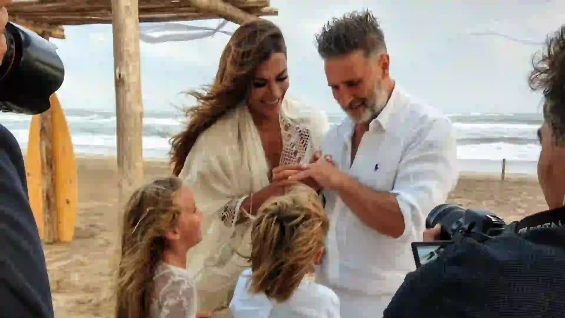 En el día del festejo de su cumpleaños número 44, Flor de la V celebró por partida doble renovando sus votos matrimoniales con Pablo Goycochea. A las 18.30 y en una playa de Mar del Plata, la pareja vestida en all white y acompañada por sus hijos de Paul e Isabella –quienes llevaron los anillos– realizó una íntima y emotiva ceremonia para familiares y amigos.