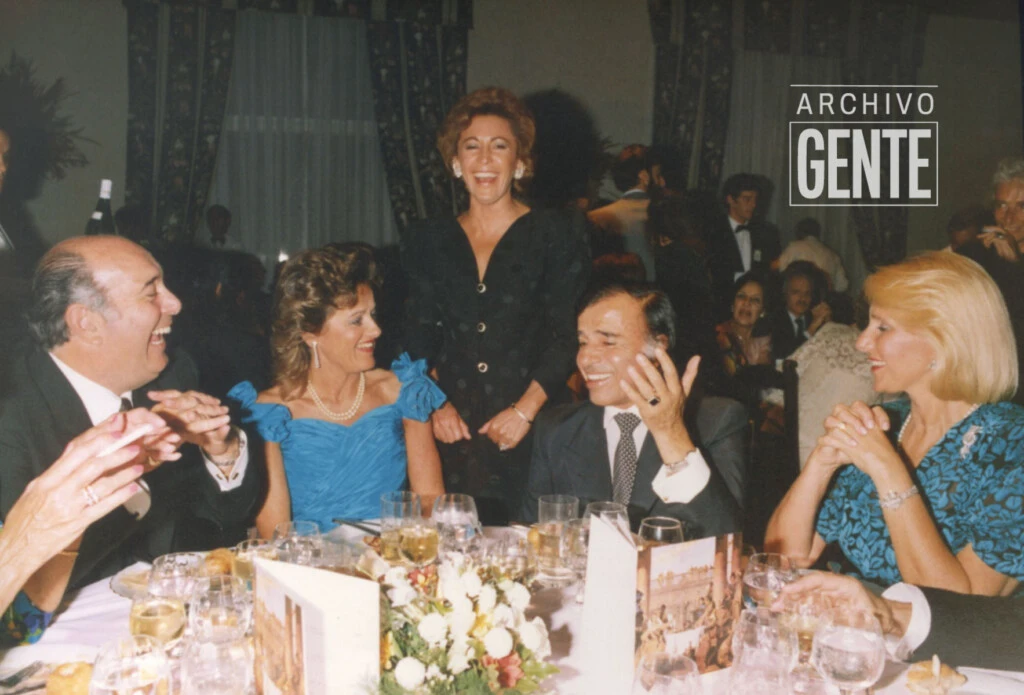 Siempre se rumoreó sobre un posible vínculo amoroso entre Amalia Yuyito González y Carlos Menem. Tanto es así que compartieron sus famosas cenas en Olivos repletas de figuras del espectáculo curadas por Moria, como queda registrado en esta, una de las pocas imágenes.