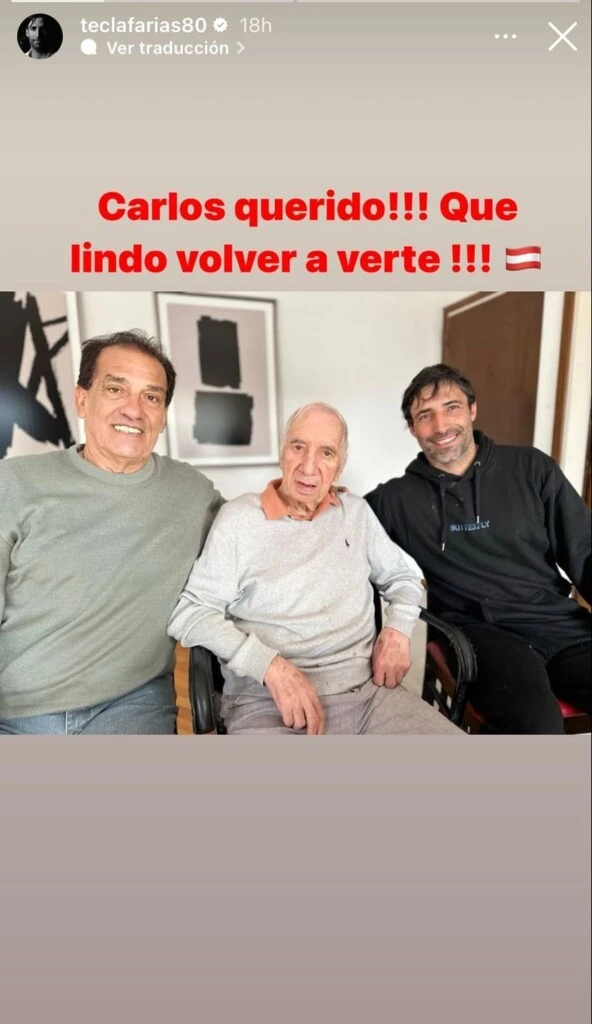 Además, explicó que vive en su departamento del barrio porteño Caballito y allí un equipo médico lo atiende a diario: "Carlos está bien. Se baña, se cambia y come, está en la casa con un enfermero, ve los partidos...".