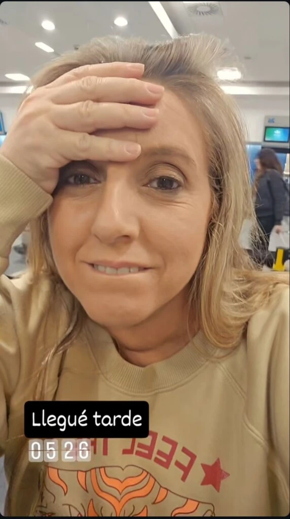 "No lo van a poder creer: por cuatro minutos no me subieron al vuelo. No lo puedo creer. Dicen que hay que llegar 45 minutos antes. Yo había llegado 1 hora antes, pero a la fila llegué 4 minutos después de que cerró el vuelo", indicó un tanto angustiada desde el aeropuerto en una historia de Instagram.