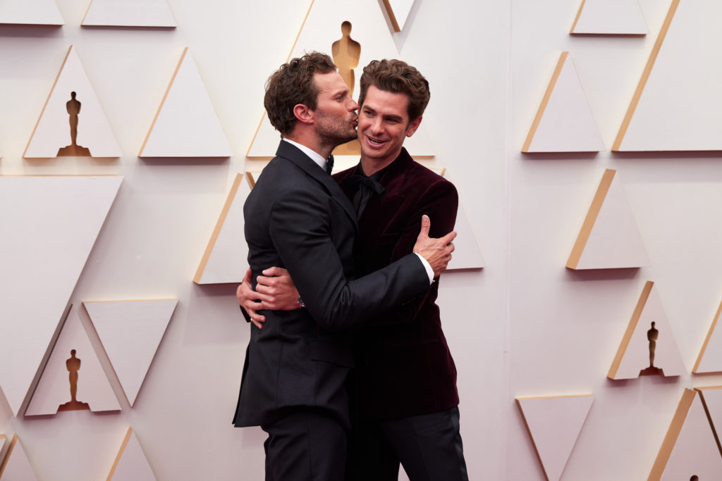 Garfield, el actor nominado a los Oscar 2022 por su papel en Tick, Tick... Boom! causó sensación en la red carpet, y no sólo por su beso y abrazo con Jaime Dornan. También llamó la atención su estilismo. El actor optó por un traje oscuro y sobrio, de terciopelo tinto y acompañado con un sofisticado ribbon.