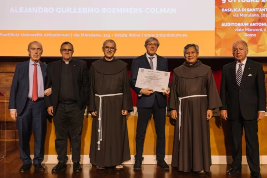 El pasado 9 de octubre, el filántropo, poeta y dramaturgo Alejandro Guillermo Roemmers pasó a formar parte de la historia de la destacada Universitá Antonianum de Roma cuando le entregaron un reconocimiento por sus años de trabajo, aporte y dedicación. Roemmers recibió el máximo título académico otorgado por la universidad y se convirtió en el primer laico en recibir dicha condecoración: el Doctorado Honoris Causa en Filosofía con especialización en Ecología integral.