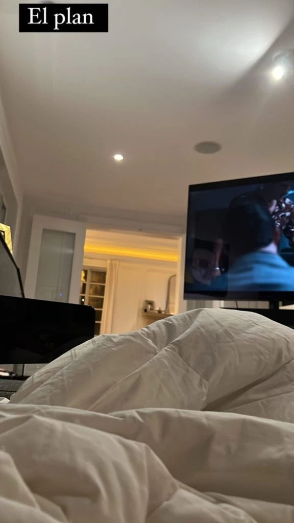 Mientras las fotos de la modelo iban siendo compartidas y la noche pasaba, Ricky Montaner se encontraba solo en su cama mirando series. Así lo hizo saber a sus fans al compartir una foto suya desde la cama mirando la televisión en la que escribió: “El plan”.