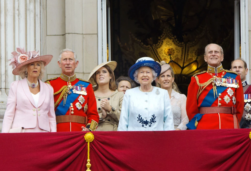 Camilla Parker Bowles, duchesse de Cornouailles, le prince Charles, prince de Galles, la princesse Eugenie d'York, la princesse Anne, la reine Elisabeth II d'Angleterre, la comtesse Sophie de Wessex, le prince Philip, duc d'Edimbourg - La famille royale britannique au balcon lors de la parade Trooping the Colour à Londres le 15 juin 2013 London,J une 11 2013 Trooping the Colour