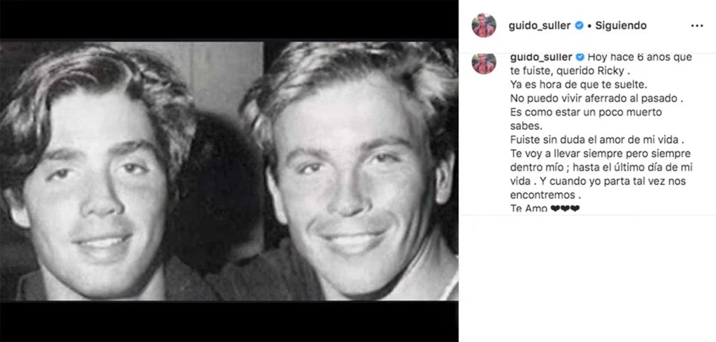 "Hoy hace 6 años que te fuiste, querido Ricky. Ya es hora de que te suelte. No puedo vivir aferrado al pasado. Es como estar un poco muerto sabés", escribió Guido en sus Instagram junto a una foto de los dos años atrás