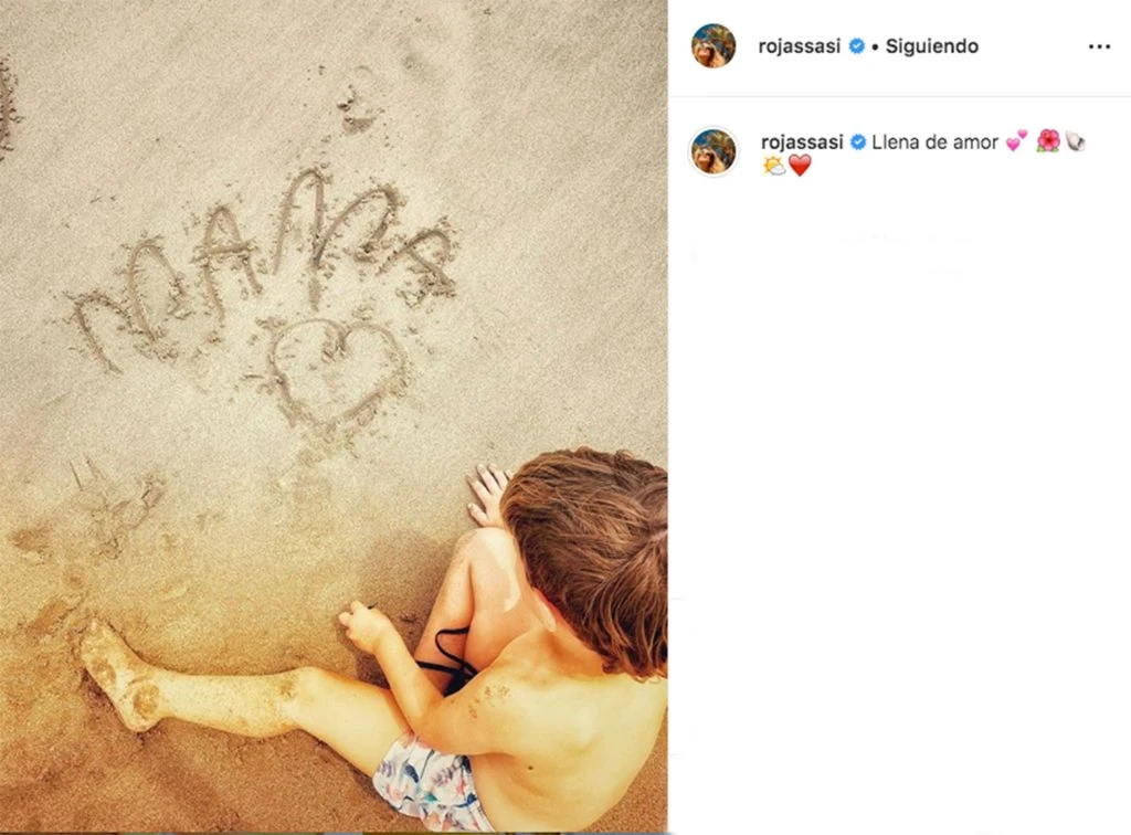 "Llena de amor", expresó Sabrina en Instagram, junto a una foto de su hijo menor, Fausto (de casi 5 años), sentado en la arena tras escribir "mamá", junto a un corazón.