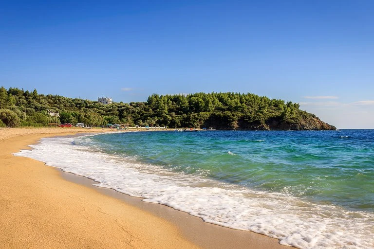 Aretes en uno de los tres largos “dedos” de Halkidiki que se extienden sobre el mar Egeo. Se destaca como una de las opciones más relajadas y tranquilas.