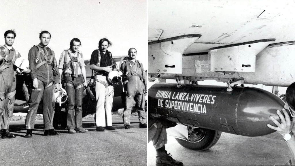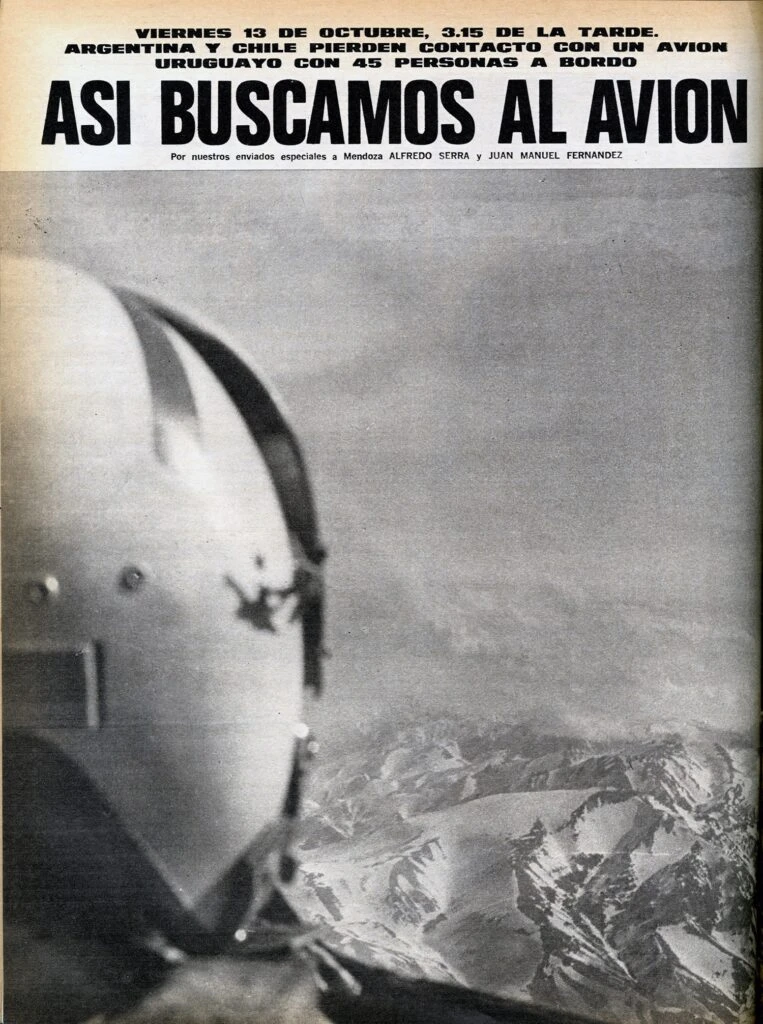 Tan sólo 5 días después de la tragedia, el periodista Alfredo Serra y el fotógrafo Juan Manuel Fernández salieron desde Mendoza en un avión cazabombardero junto al equipo de rescate intentando encontrar al avión uruguayo.