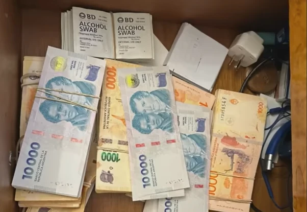 Lo cierto es que en las fotos que se filtraron a la prensa se ven varios fajos de dólares y billetes de 10 mil pesos argentinos, relojes, papeles de importancia, algún que con otro dispositivo electrónico y hasta prescripciones médicas en esos cajones.