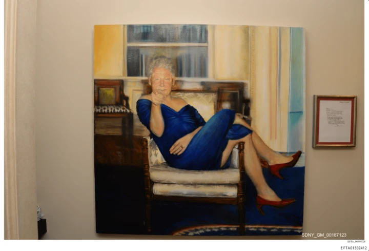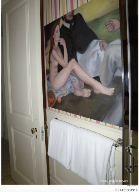 No todo es economía: también aparece entre las lecturas High Crimes and Misdemeanors, de Ann Coulter, un libro publicado en 1998 en el clímax del escándalo entre Bill Clinton y Monica Lewinsky, que resulta ser un alegato jurídico y político a favor del impeachment o juicio político para destituir funcionarios... Sí, y se decía amigo de Clinton. Y también fue encontrada en su mansión la obra de arte que veremos a continuación y figura entre los archivos desclasificados.