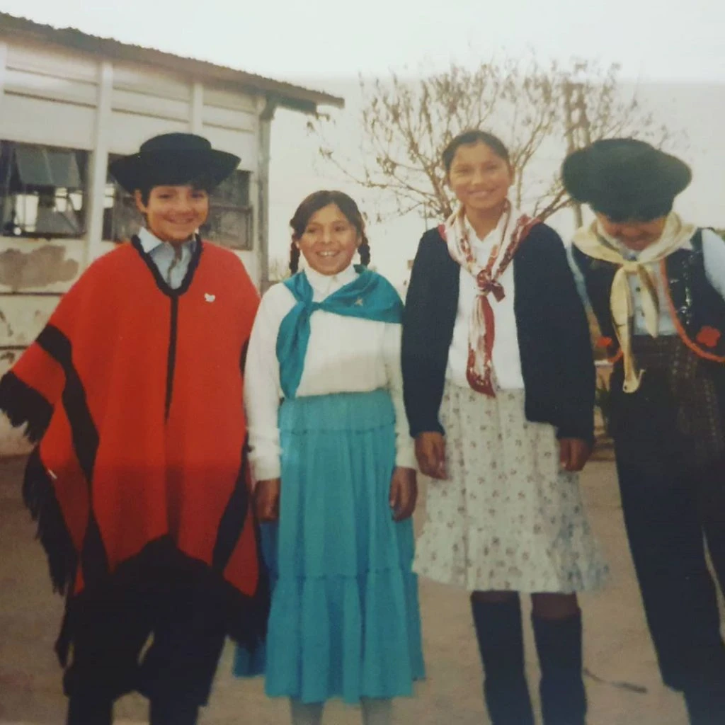 El primero que subió fue de un acto en su escuela. "Actuando en la escuela 56 de burlado mi primera escuela antes de mudarme a Adrogué... Si mal no recuerdo era una obra los sordos ... me re acuerdo de los nenes aunque no de sus nombres soy la del poncho salteño (rojo)", escribió junto a la foto.