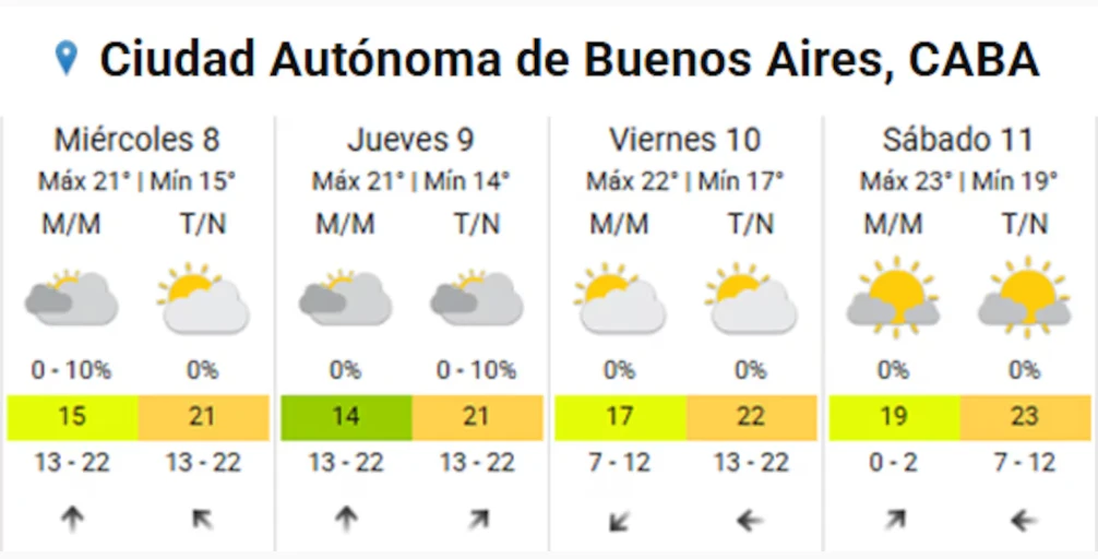 Día por día, el pronóstico del clima detallado para la semana en Buenos Aires