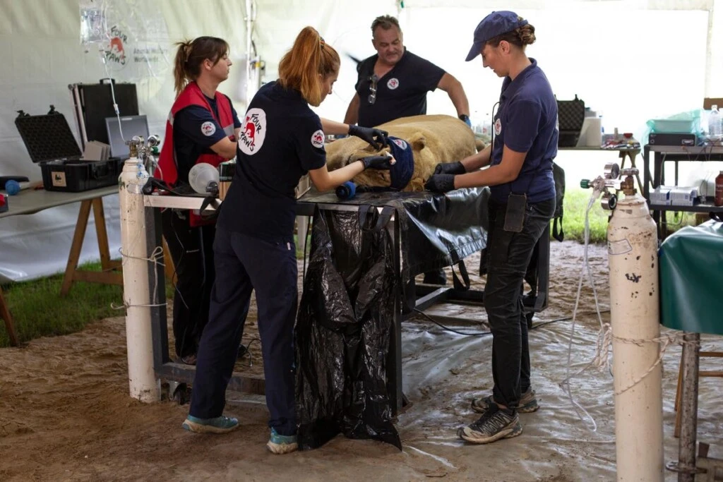 Con respecto a los tigres y los leones, la directiva de la organización mundial de bienestar relata: "Todo lo que tiene ver con ellos -alimentación, medicamentos, seguridad y demás- quedó a nuestro cargo. Sin embargo, hasta ahora ellos seguían teniendo la tenencia legal y financiando la alimentación básica a través de algunos cuidadores del ex zoo que continuaban trabajando con los animales. Otros, que ya se habían ido, cuando supieron que nosotros ayudaríamos, decidieron volver".