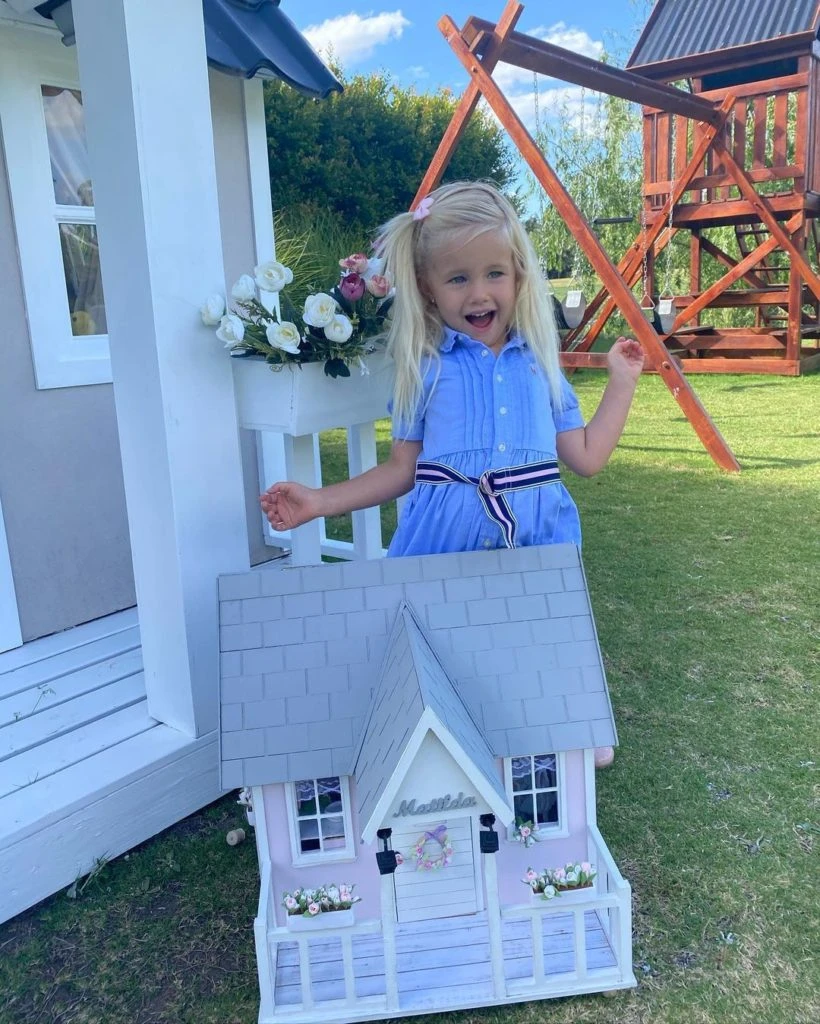 Días antes, Matilda había recibido otra casita de muñecas un poco más alta que ella: una rosada con su nombre grabado en una de las paredes, junto a un simpático unicornio.