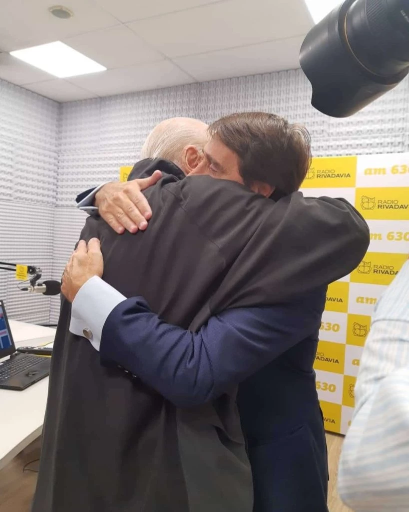 Emocionado Eduardo Feinmann compartió una foto abrazado a Cacho Fontana y dijo, "Su cariño infinito! Te vamos a extrañar Cacho Fontana. El mejor. Gracias por el afecto y enseñanzas".