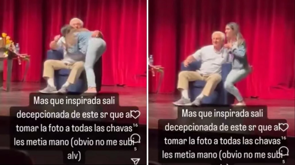 Estas imágenes fueron tomadas por una de las presentes en el auditorio y escribió: "Mas que inspirada salí decepcionada por este señor al que al tomar la foto a todas las chavas les metía mano. Obvio no me subí".