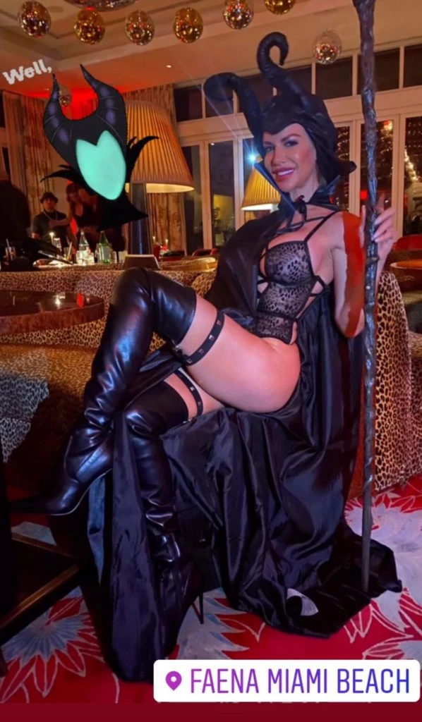 La modelo Luciana Salazar acaparó las miradas en el hotel Faena de Miami Beach, donde lució un sensual disfraz de Maléfica, equipado con todos los accesorios de la villana de Disney. Con bastón, cuernos, body lencero, capa y bucaneras negras, Lulipop bailó toda la noche en este evento único que se realiza cada año en la Florida.