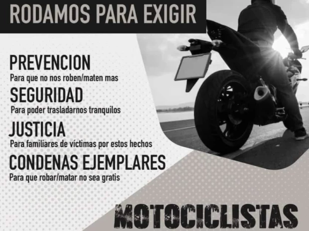 "Exigimos justicia, pedimos condenas ejemplares, queremos que los fiscales y jueces actúen como corresponde. Queremos que se termine la puerta giratoria. ¡No queremos ni un solo motociclista asesinado más! Vamos a seguir y no vamos a parar hasta que tengamos respuestas reales y concretas", reza el texto que invita a la convocatoria.