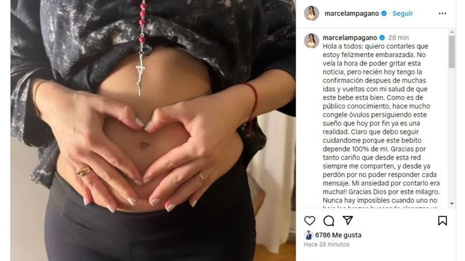 Más adelante detalló cómo fue su proceso para lograr ese positivo que tanto anhelaba: "Como es de público conocimiento, hace mucho congelé óvulos persiguiendo este sueño que hoy por fin ya es una realidad". Y siguió: "Claro que debo seguir cuidándome, porque este bebito depende 100% de mi".