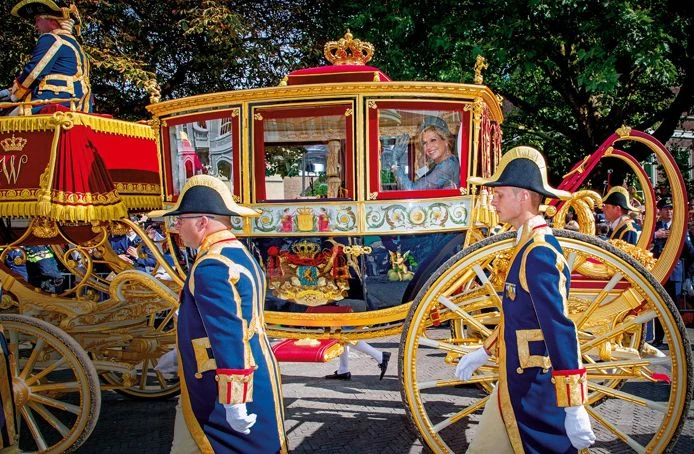 Para la apertura del Parlamento optó por un vestido gris azulado del belga Edouard Vermeulen, guantes de cuero y zapatos del holandés Jan Taminiau, sobre de Christian Dior –regalo de François Hollande, ex presidente francés– y tocado tipo pillbox de la belga Fabienne Delvigne.