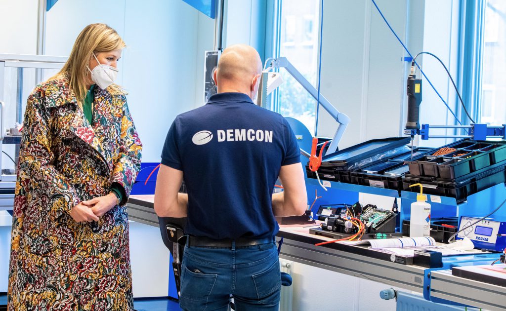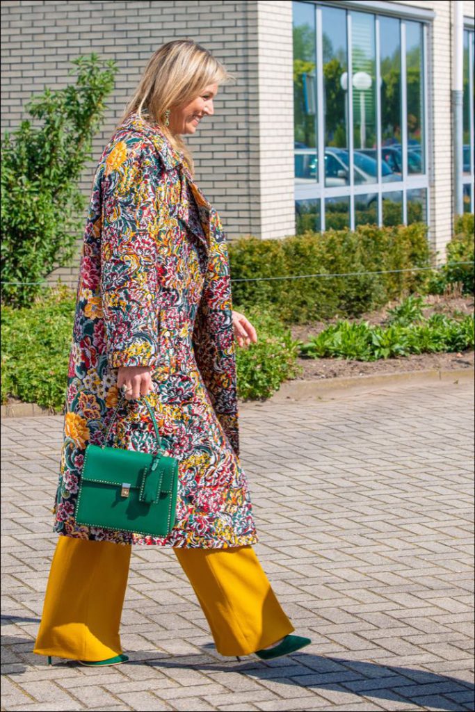 La argentina llamó la atención con un outfit de Oscar de la Renta y estrenó barbijo para conocer personalmente el alcance del brote de coronavirus en los Países Bajos.