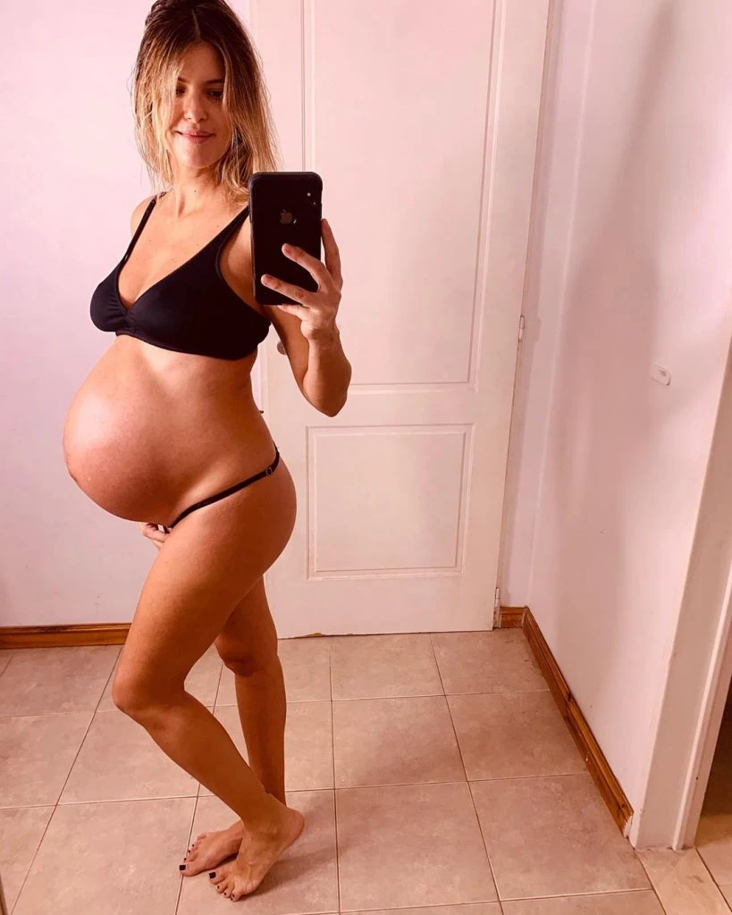 Agradecida, revela que “por suerte estamos acompañados por la chica que trabaja en casa, que es paraguaya y está haciendo la cuarentena con nosotros. Porque estoy con una panza demencial que no me deja hacer mucho, ¡subo la escalera y me agito!”.