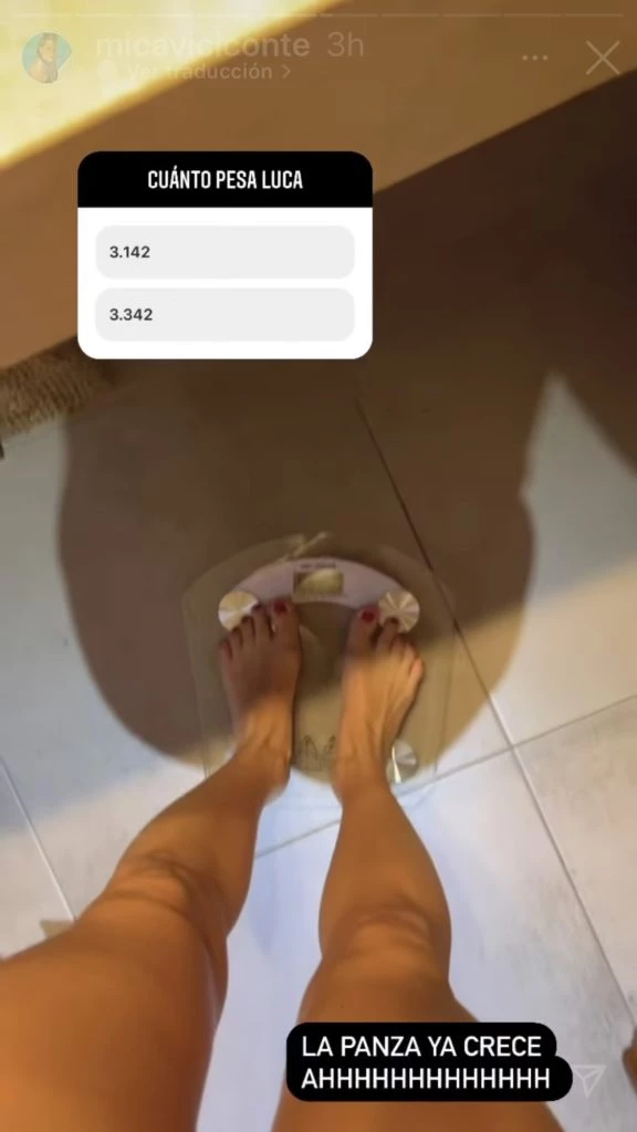 Hoy la modelo subió una historia a su cuenta de Instagram en la que mostró cuánto estaría pesando Luca en este momento: entre 3.142 y 3.330 kilos. En realidad, Mica armó la historia como si fuera una pequeña encuesta y sus seguidores pudieron votar. La verdad es que es un excelente peso para un bebé a punto de nacer.