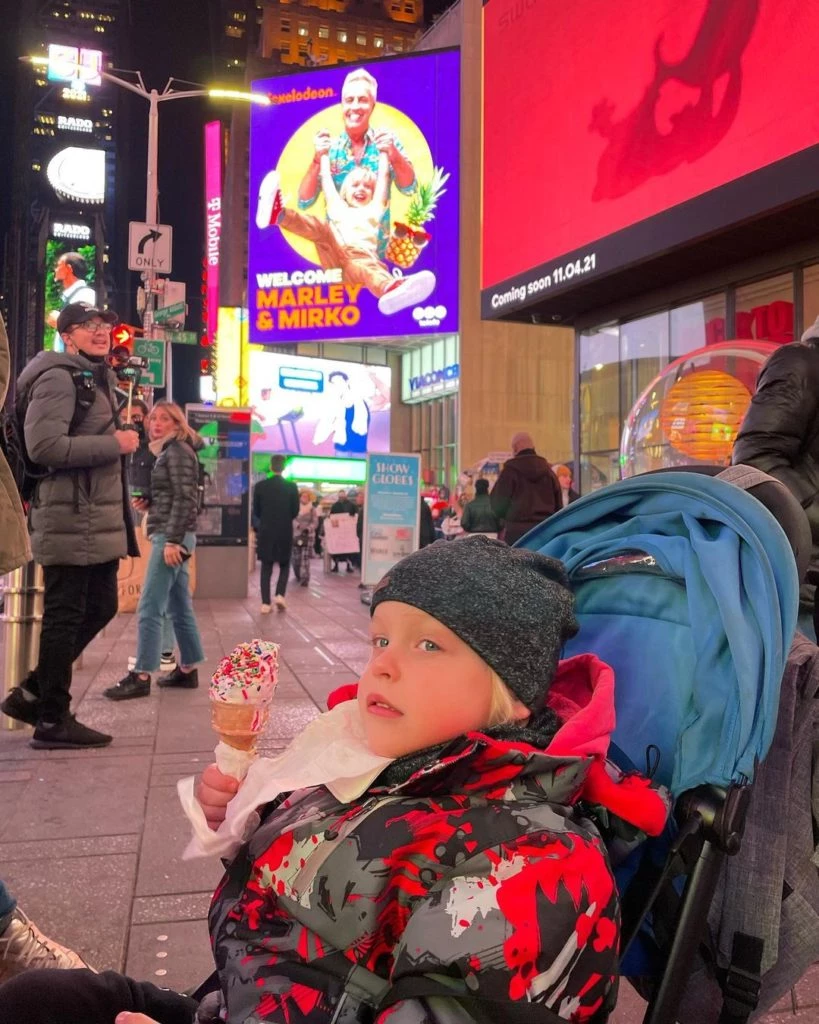 “Disfrutando de mi helado y del cartel en Times Square!”, escribió su papá en el Instagram personal del niño. Como cualquier otro pequeño Mirko aún no toma conciencia del éxito mundial que es y que con su nuevo programa televisivo llamado Marley & Mirko, llegará a un mayor número de personas.