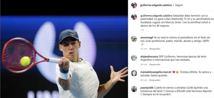Su muerte impacta aún más por un detalle tan simbólico como íntimo: su último posteo fue publicado apenas unas horas antes de su fallecimiento. El viernes, Salatino escribió sobre el triunfo de Sebastián Báez ante Ben Shelton, en el ATP de Auckland. Con su sello inconfundible, detalló resultados, rankings y análisis, demostrando que su pasión por el tenis seguía tan viva como siempre. El mensaje, que celebraba el pase del argentino a semifinales, quedó convertido en una despedida involuntaria y cargada de emoción. Las redes se llenaron rápidamente de mensajes que agradecían décadas de información, compañía y amor por el deporte.