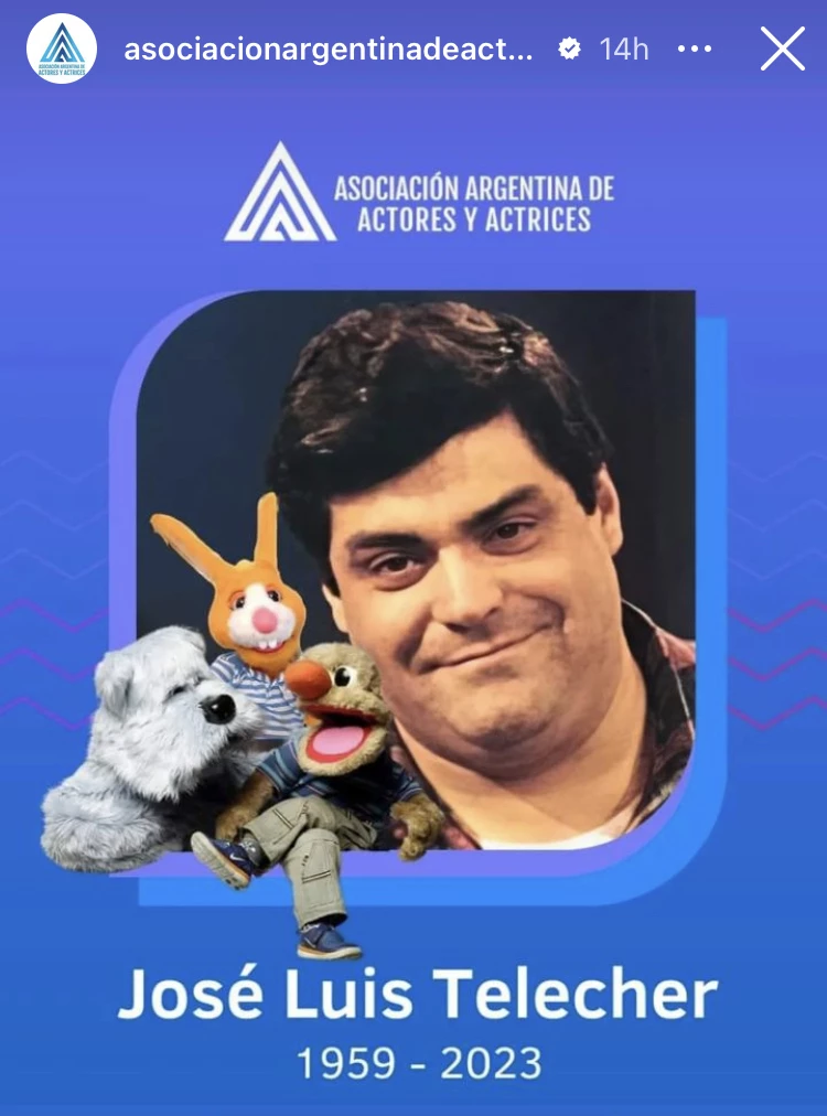 Asimismo, fue homenajeado por la Asociación Argentina de Actores y Actrices: “Despedimos al titiritero José Luis Telecher. Fue el creador de inolvidables personajes que acompañaron a varias generaciones, como Carozo, Narizota y Pepe Pompín. Nuestras sentidas condolencias a su hermana Patricia, familiares y seres queridos”.