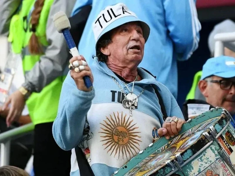 Tula apareció por primera vez en la tribuna de Rosario Central en los años 70′ y acumuló más de cuatro décadas acompañando al seleccionado nacional. El hombre del bombo mantenía un vínculo con Juan Domingo Perón, ya que el ex presidente fue quien le regaló el instrumento que tuvo su primera aparición pública en Alemania 1974. En el último campeonato del mundo, se pudo ver a Tula desmejorado físicamente en silla de ruedas y con bastón, pero disfrutando de las calles de Medio Oriente.